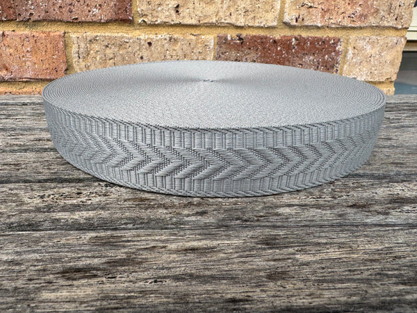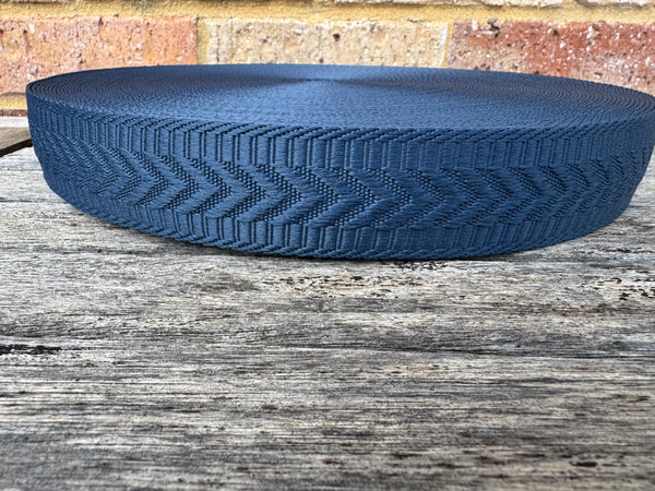 Our tracks webbing is a poly cotton 38mm webbing. Perfect for adding a touch of class to your next bag.